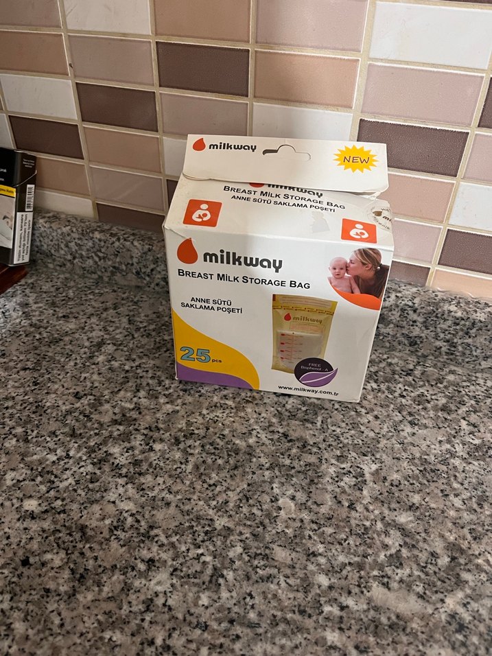 Milkway anne sütü saklama poşetleri 25'li paket halinde. Sütü güvenle saklamak için sızdırmaz kapaklı, hijyenik kullanıma uygundur. Renkleri gri ve kahverengidir.