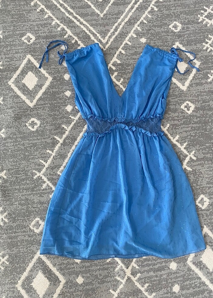 Mini kendinden simli belinde dantel detayı var