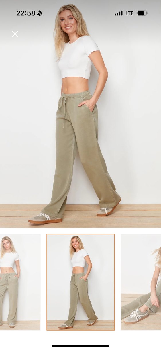 Milla haki tensel yüksek bel pantolon
