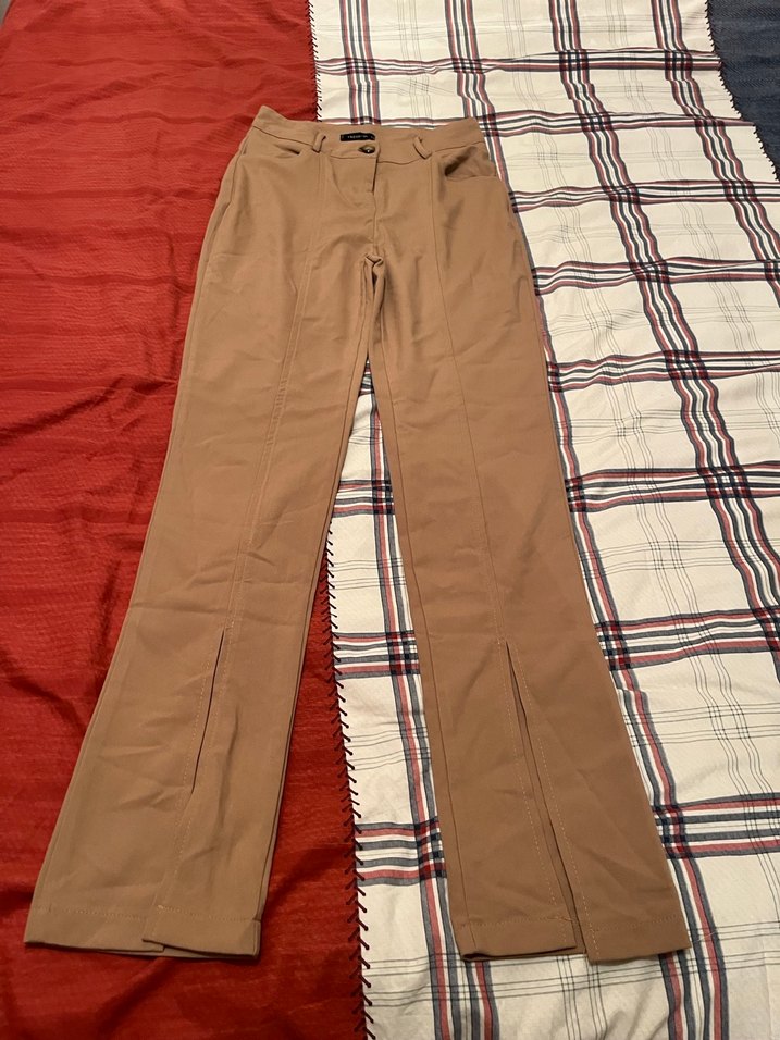 Bej açık kahverengi arası bi rengi var Paçaları yırtmaçlı 160 boyum var bana uzun oldu 165 ve üstüne daha iyi duracağını düşünüyorum Sıfır etiketli