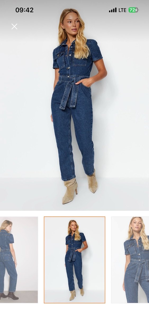 Milla mavi kemerli denim tulum