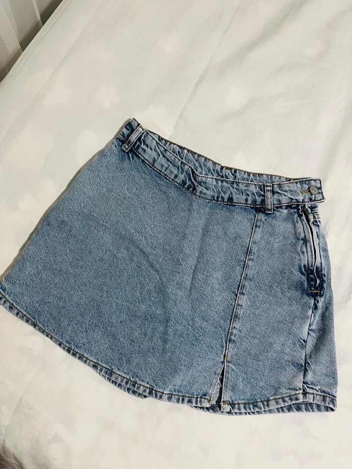 Kadınlar için mavi renkte, denim şort etek. Günlük kullanım ve rahat sokak tarzı için uygundur. Bir kere giyildi sadece defosu yok.
