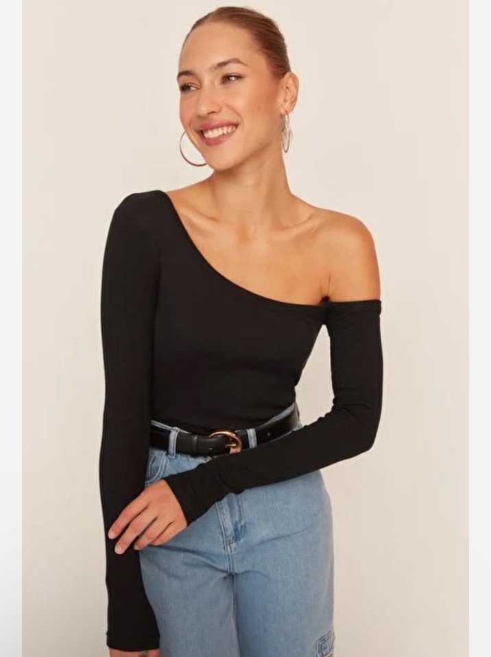 milla Tek Omuz Siyah Uzun Kollu Bluz