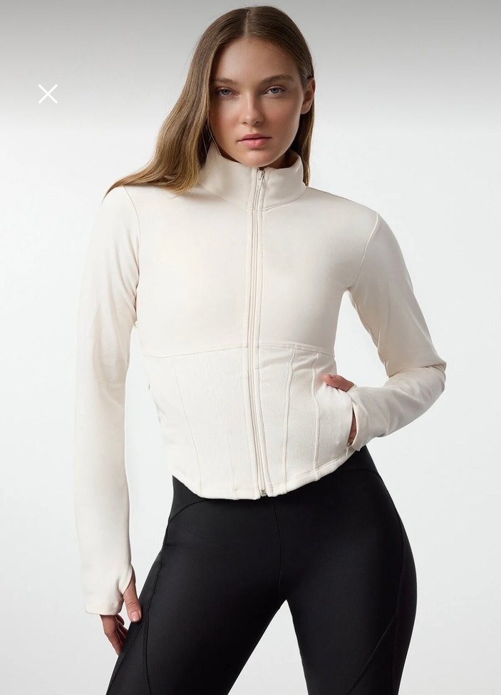 Yumuşak ve sıcak kumaştan yapılan, yüksek yakalı ve ön fermuarlı beyaz, uzun kollu, dar kesim spor üst. Düz, normal boyda, sportif sokak stili için uygun. ♀️sorunsuz hic giyilmedi