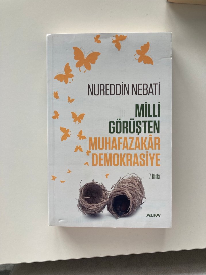 Nureddin Nebati'nin "Milli Görüşten Muhafazakar Demokrasiye" kitabı, milli görüşten muhafazakar demokrasiye geçişi anlatıyor. Kapağında kelebek ve boş yuvalar yer alıyor.