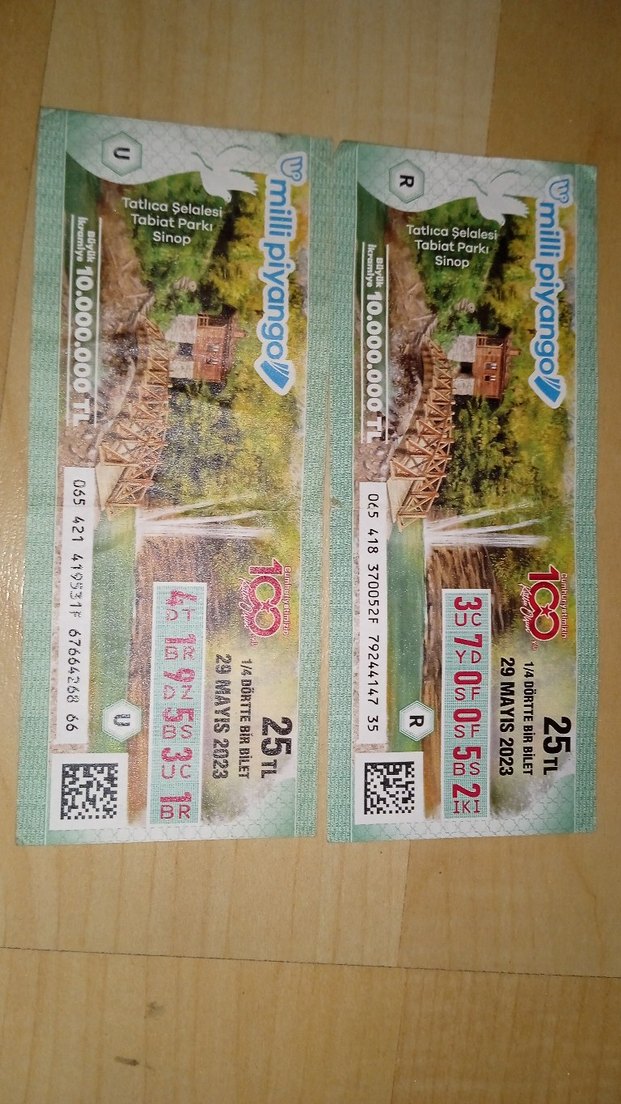 29 Mayıs 2023 tarihli, Sinop Tatlıca Şelalesi Tabiat Parkı görselli Milli Piyango biletleri. Her biri 25 TL, 10.000.000 TL ödüllü. Çeşitli ürünler için diğer ilanlarıma da bakınız.