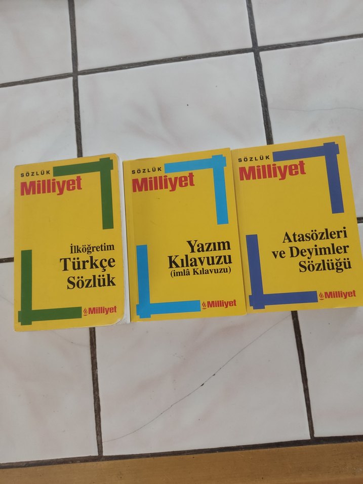 Milliyet'ten ilköğretim Türkçe sözlüğü, imla kılavuzu ve atasözleri ile deyimler sözlüğü içeren üçlü kitap seti.