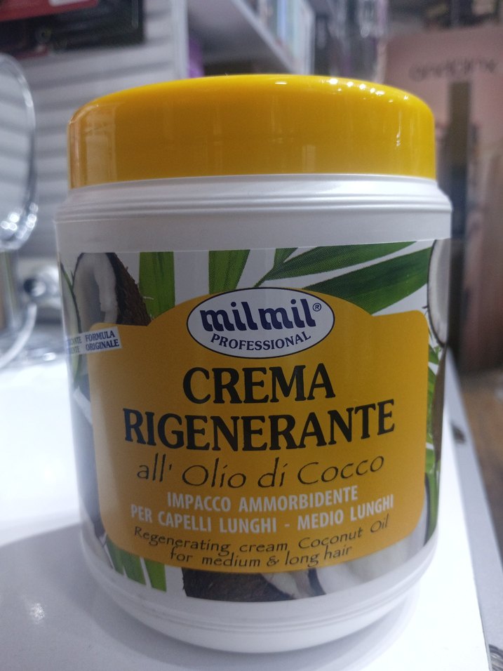 Milmil Professional hindistancevizi yağı içeren, orta ve uzun saçlar için yumuşatıcı ve onarıcı krem.