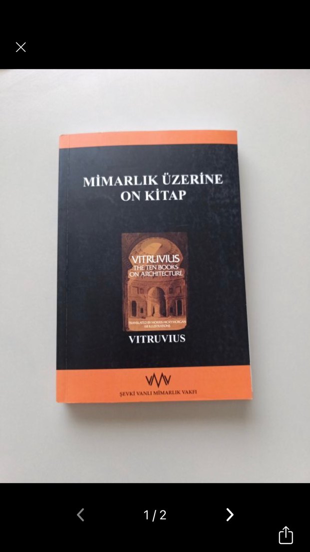 'Mimarlık Üzerine On Kitap' adlı eser, Vitruvius tarafından yazılmış ve mimarlık prensiplerini içermektedir. Şevki Vanlı Mimarlık Vakfı tarafından yayımlanmıştır. Birkaç sayfasında kopuk bar fakat eksik sayfa yok