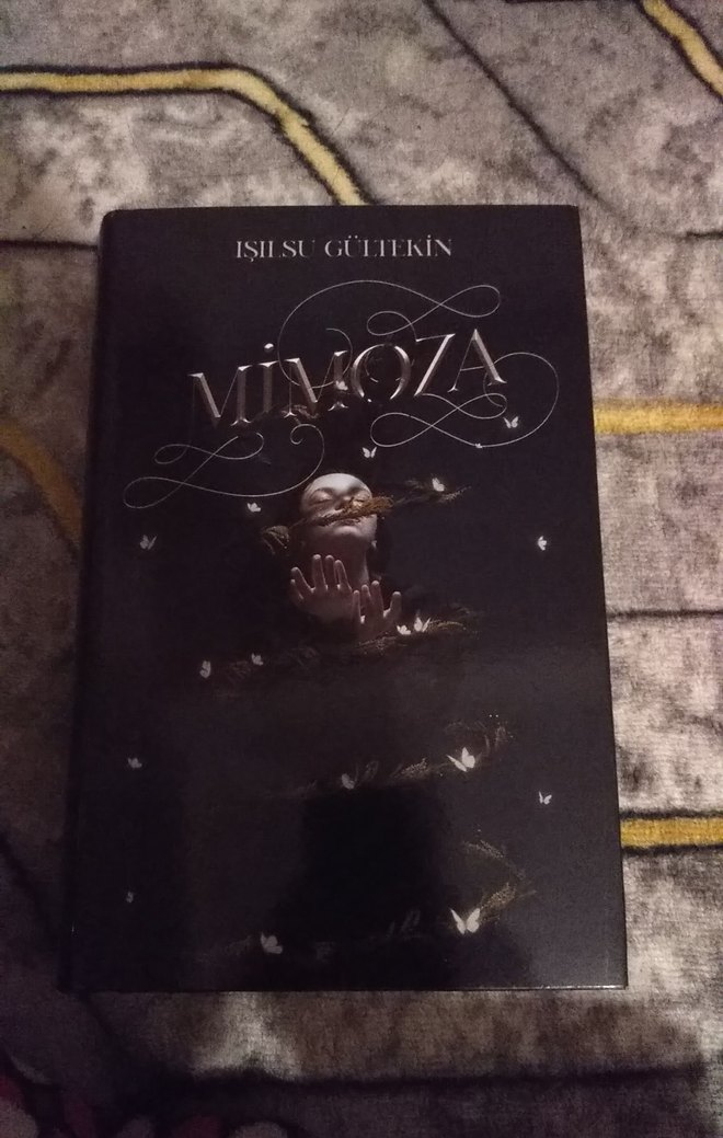 Işıl Su Gültekin'in 'Mimoza' adlı romanı, karanlık zemin ve detaylı tasarımıyla gizemli bir atmosfer sunuyor. sifir alindigi gibi dolaba koydum kapagi bile acilmamis
