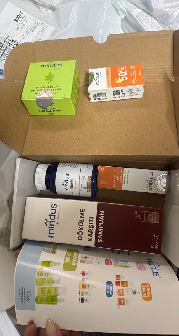 Mindus kadın cilt bakım seti, soya matcha maskesi, dökülme karşıtı şampuan ve cilt ile saç sağlığını destekleyen ürünler içerir.
