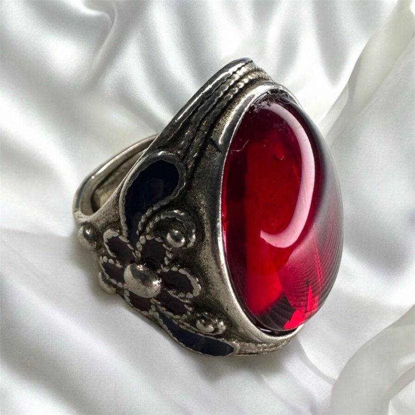 El yapımı Mine işçilikli Çin hanedan ya da kaftan unisex yakut rengi taşlı yüzük çin seyahatinde alındı hiç kullanılmadı