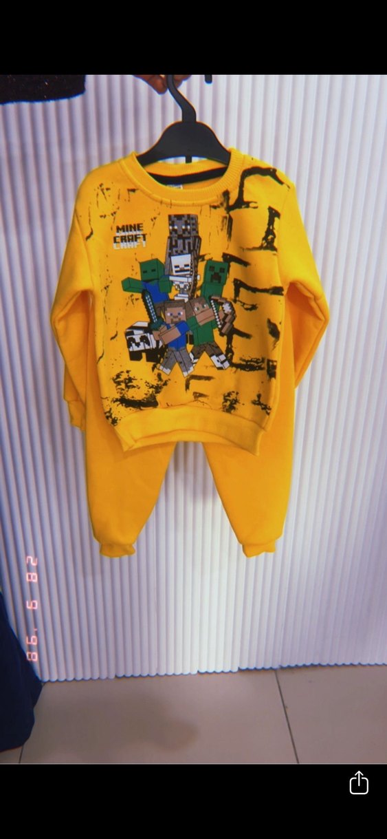 Rahat kesim, uzun kollu ve bisiklet yaka sarı erkek sweatshirtü, yumuşak örme kumaş ve renkli Minecraft baskısına sahiptir. %100 pamuklu içi şardonlu 3 iplik ❤️