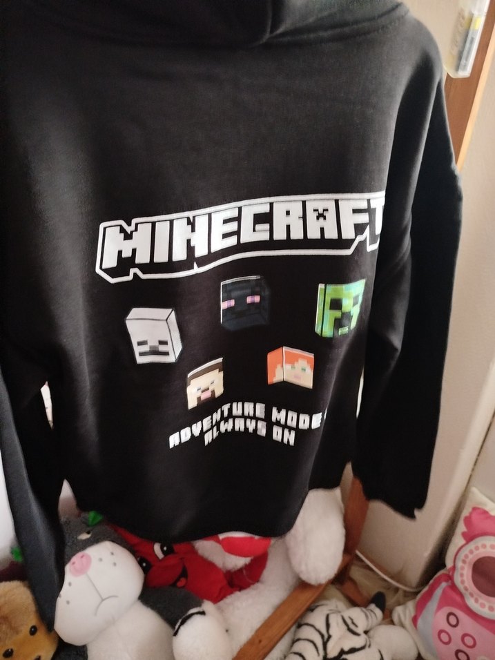 Siyah renkli, uzun kollu ve yuvarlak yakalı erkek sweatshirtü, yumuşak ve sıcak kumaştan üretilmiştir takım şeklindedir. Minecraft baskısı ve örgü dokusu ile rahat bir kesime sahiptir.