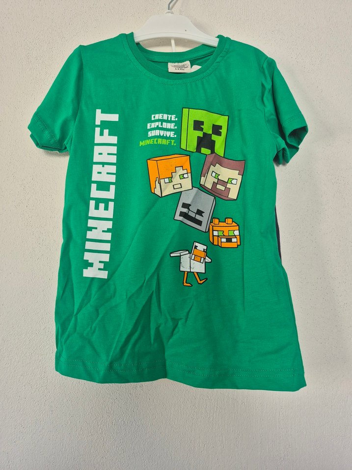 Rahat kesim, kısa kollu yeşil erkek tişörtü, renkli Minecraft baskısı ve yuvarlak yaka ile yumuşak ve sıcak kumaştan üretilmiştir. Sokak stiline uygun. 3 yaştan 6 yaşa kadar erkek çocuk şortlu takım