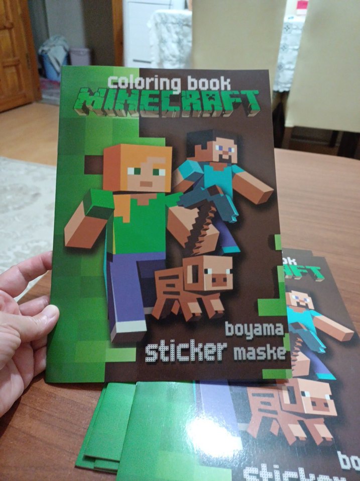 Minecraft temalı boyama kitabı, sticker ve maske içerir. Oyundaki karakterler ve öğelerle yaratıcı oyun sağlar.