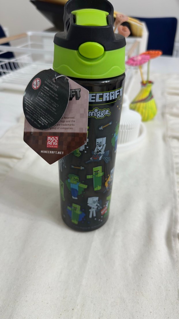 Koyu yeşil renkli, Minecraft temalı çocuk termos şişe, güvenli kapak ve canlı karakter baskılarına sahiptir. 'Sıfırdır. Smiggle..