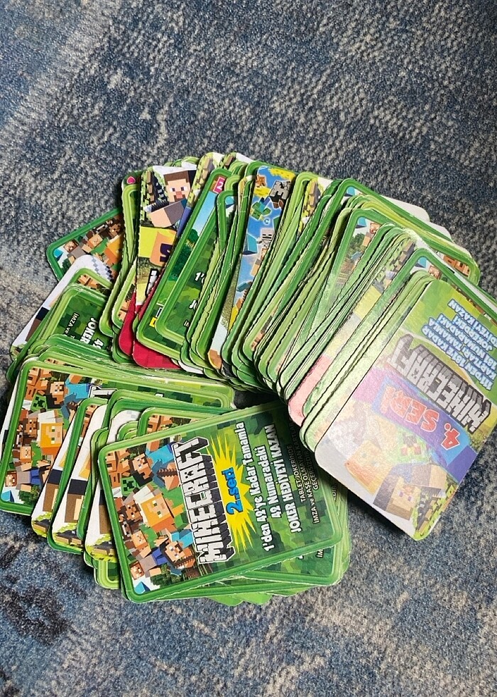 150 adetten fazla 2-3-4-5. Serilerden karışık Minecraft oyun kartları, yırtık vb yoktur. Gayet iyi durumda.
