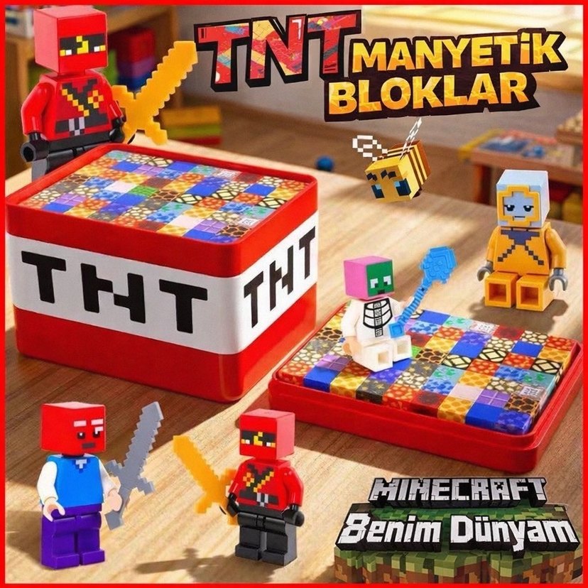 Minecraft renkli manyetik bloklar ve mini figürlerle yaratıcı oyun imkanı sunar. Canlı renkli parçalar ve tanınabilir karakterler içerir.