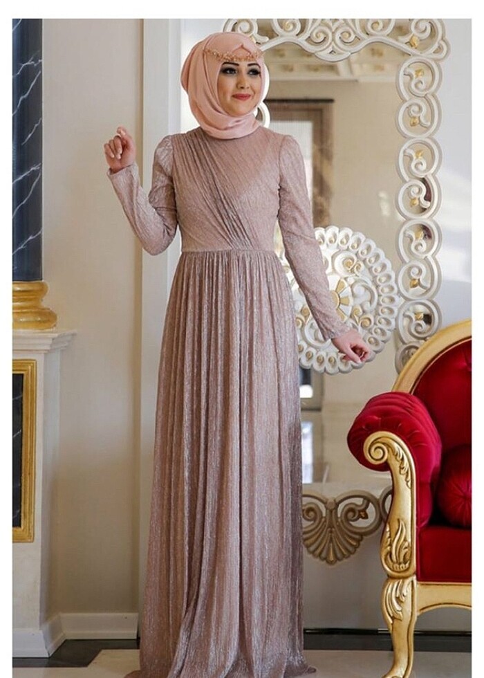 Minel aşk abiye elbise sıfırdır pudra rengi