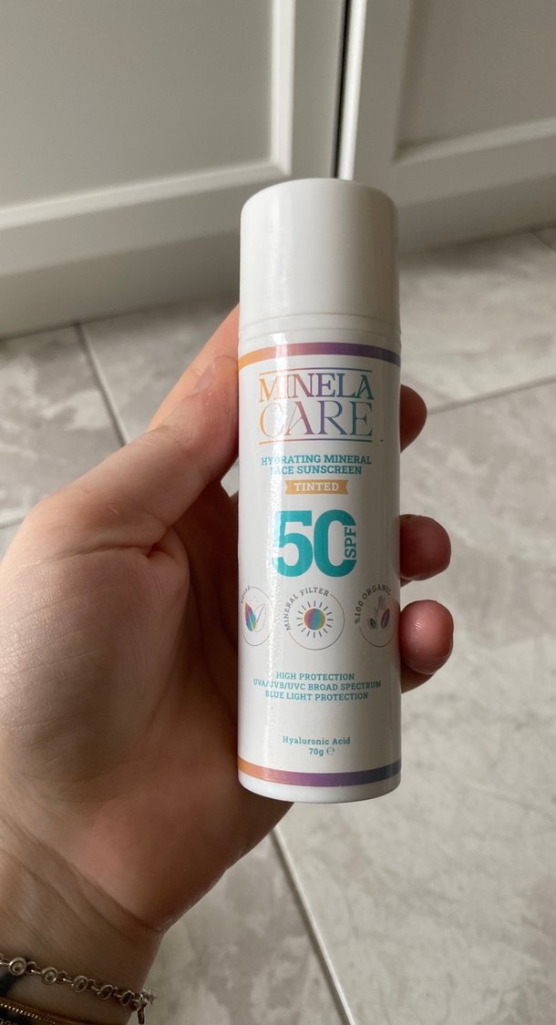 Minela Care SPF 50 tonlu mineral güneş kremi, geniş spektrum UVA/UVB ve mavi ışık filtresi ile yüksek koruma sağlar. Hyaluronik asit içerir. ☀️ Ürün tenime çok koyu olduğu için kullanamıyorum yenidir birkere denemek için kullanıldı 150 tl ve üzeri alışverişlerde kargo cıksıı yapılmaktadır Skt 2027 dir