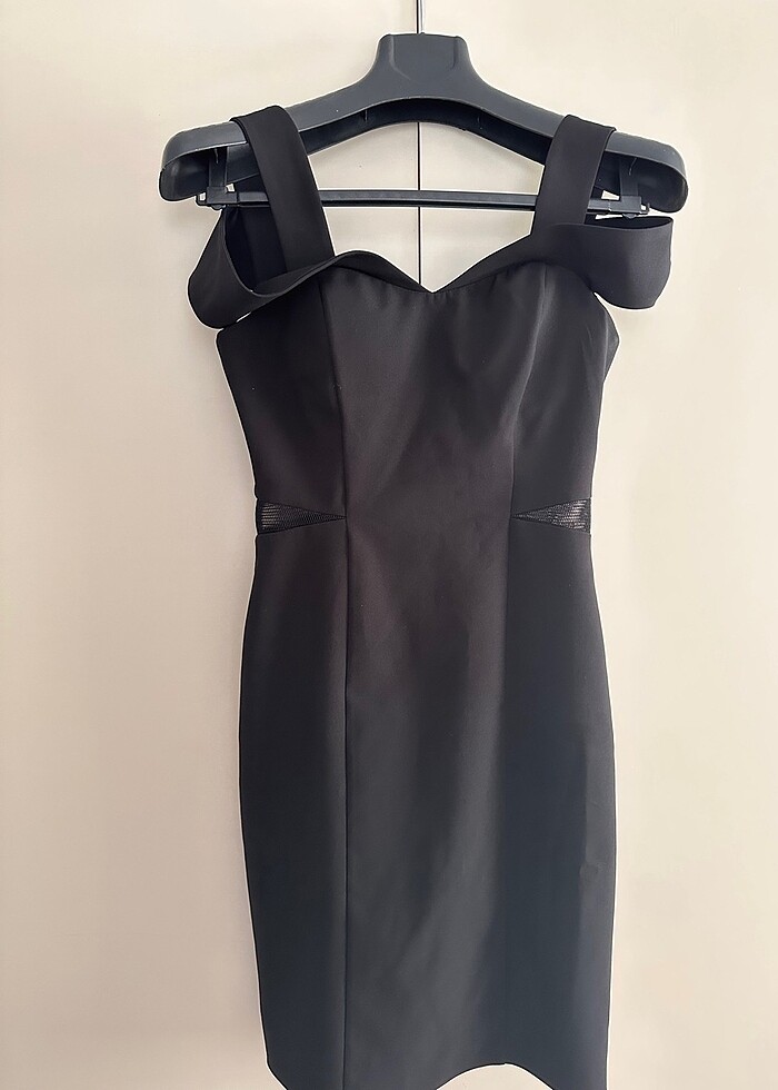 Yanlardan tül detaylı mini yırtmaçlı omuz detayı olan gerçekten zarif bir elbise 38 beden kurtarıcı bir elbise