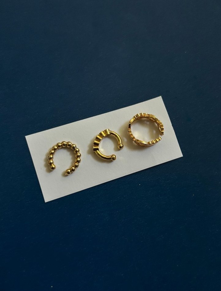 Parlak altın renkli, boncuklu detaylara sahip mini kadın küpeleri. Minimalist tarzda, günlük kullanıma uygun sade ve temel tasarım.