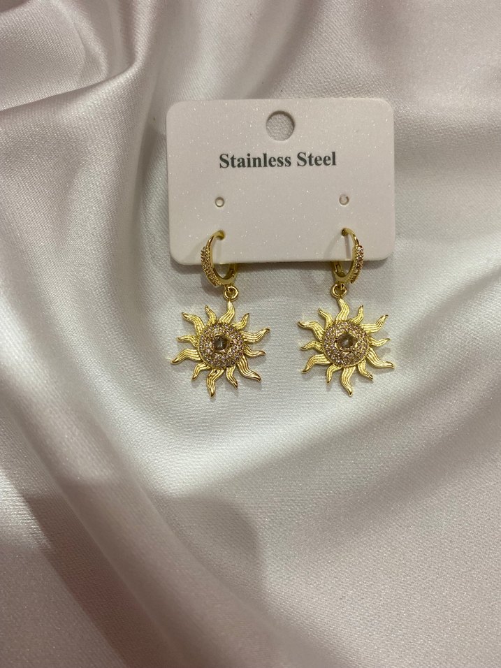 Mini Altın Güneş Figürlü Paslanmaz Çelik Küpeler
