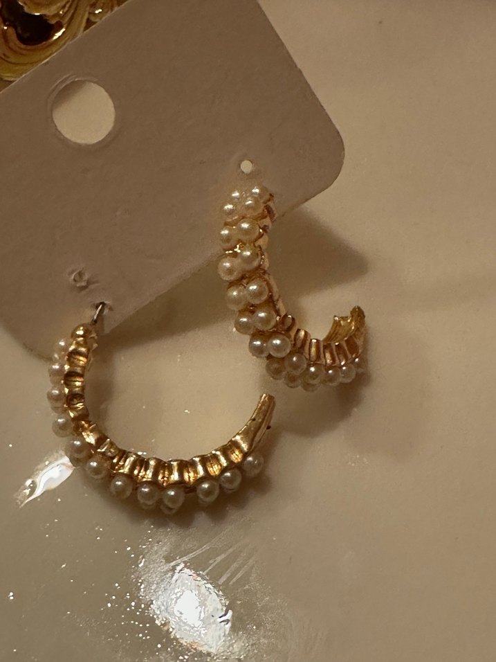 Mini uzunlukta, parlak altın renkli bu küpeler, boncuklu ve küçük incili tasarımıyla minimal ve bohem tarzı bir araya getiriyor, düğün için uygun.