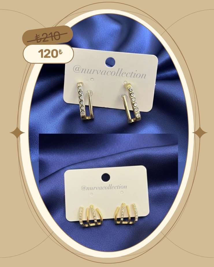 Mini Altın Renkli Sıralı Taşlı Küpeler İki Adet