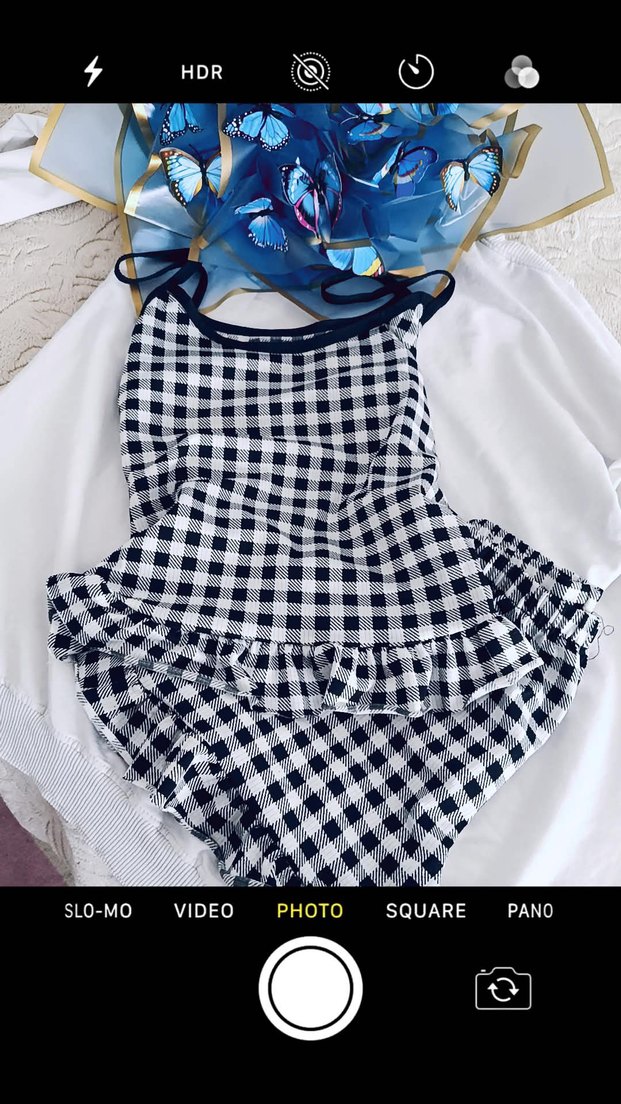 Kısa, askılı ve fırfırlı detaylara sahip, kareli desenli ve vücuda oturan kadın dörtlü takım. Günlük kullanım için uygundur.