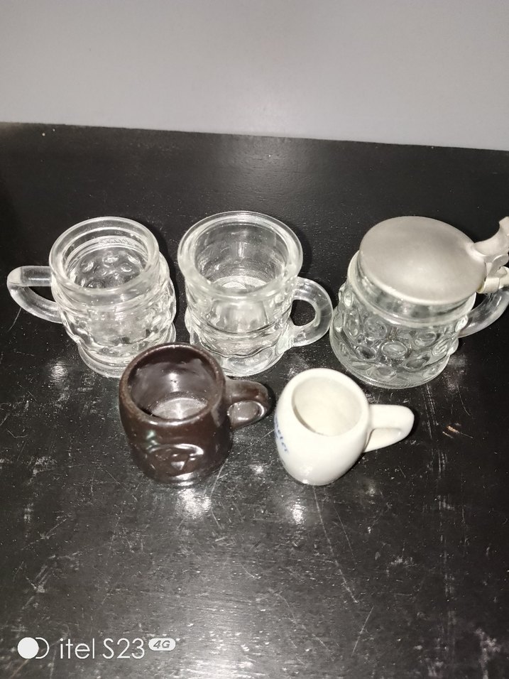 Şeffaf cam ve koyu ile beyaz seramik mini tankartlardan oluşan küçük bir set. fiyatları değişiyor 300-700 TL arası