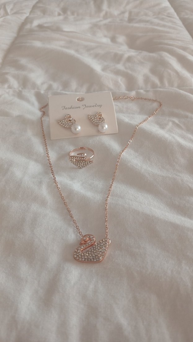 Kısa mini uzunlukta, beyaz işlemeli kuğu figürlü, payet detaylı bohem takı seti. Küpe ve yüzük ile uyumlu, düğünler için uygun. Ürün tertemiz ve hiç kullanılmamıştır.