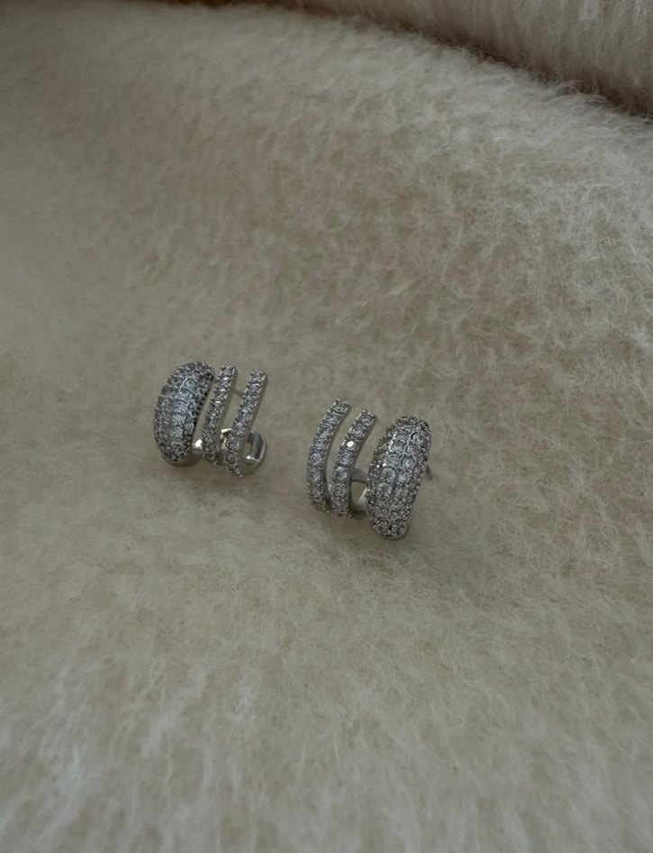 Mini Beyaz Yılan Desenli Sıralı Küpe