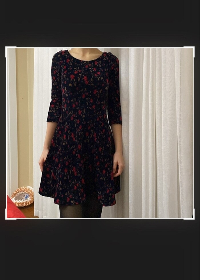 mini çiçekli kadife kısa elbise