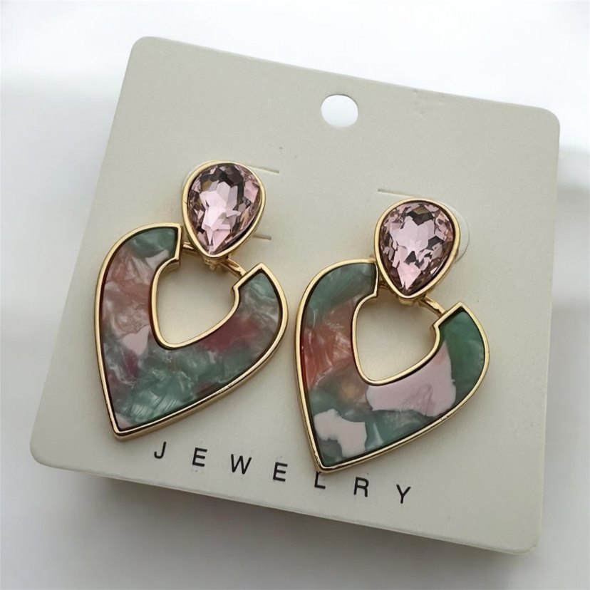 Mini kısa uzunlukta, çok renkli tie-dye desenli ve sedeflibohem tarzda küpeler. Romantik gece için ideal, hafif ve canlı renkler Parisian retro havası katıyor.