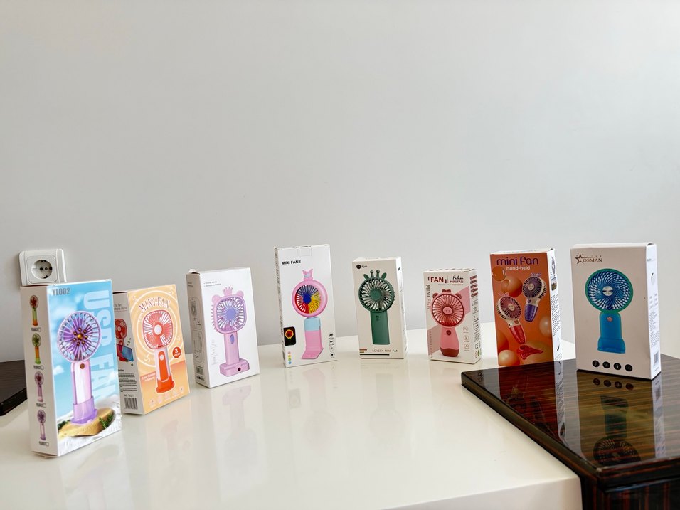 Mini taşınabilir vantilatörler, çeşitli açık ve canlı renklerde, kolay elde taşınabilir tasarıma sahip. Her biri kompakt ve renkli, kişisel serinleme için uygun. ️