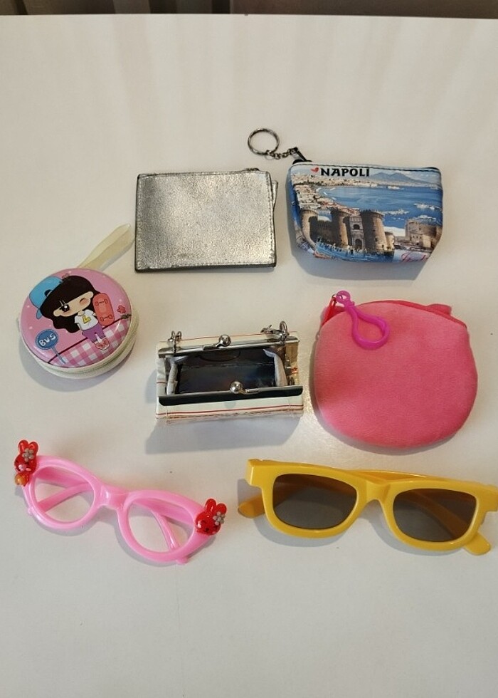 Kız Çocuk mini bozuk para cüzdanları ve gözlükler, sarı olan 3d gözlüktür, pembe olan da cam yoktur #kızçocukgözlük #minicüzdan #miniçanta #bozukparacüzdanı #bozukparaçantası #aksesuar #cüzdan #çanta #gözlük #aksesuar #takı