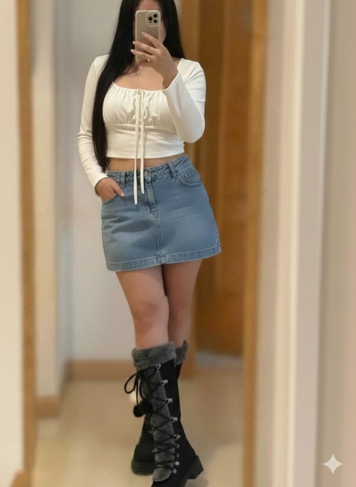 Beyaz denim mini etek, günlük sokak modasına uygun, rahat ve şık bir görünüm sunar.