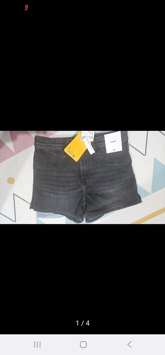 Gri - siyah mini denim şort, günlük sokak stiline uygun rahat kesim.