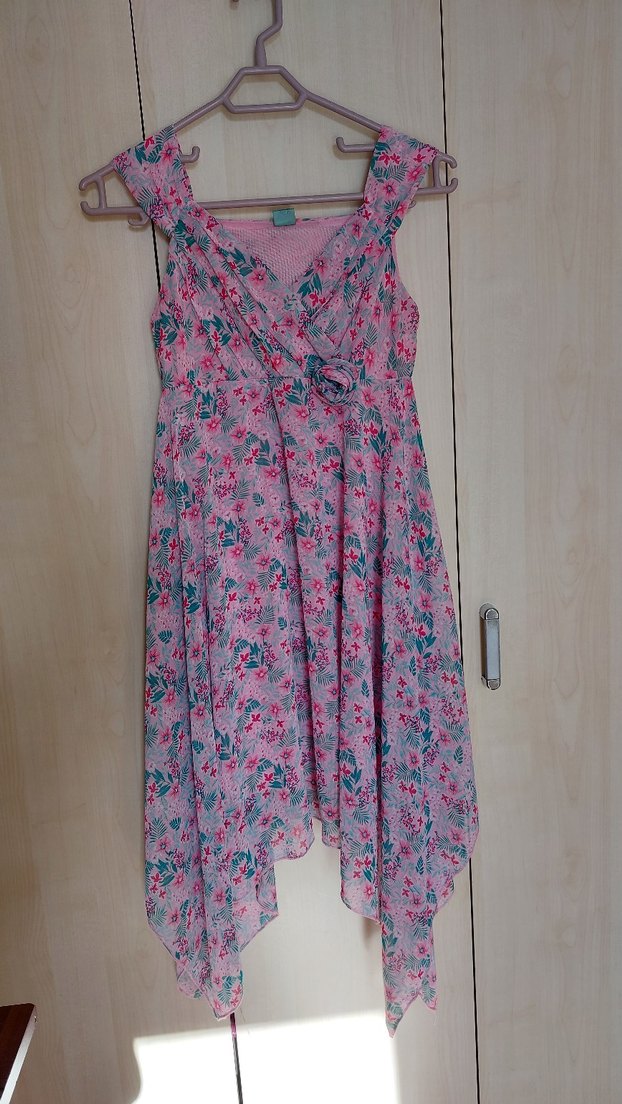 Çiçek desenli ince kumaştır, tertemiz ve defosuz. göğüs kısmı 36 cm boy ortalama 75 cm