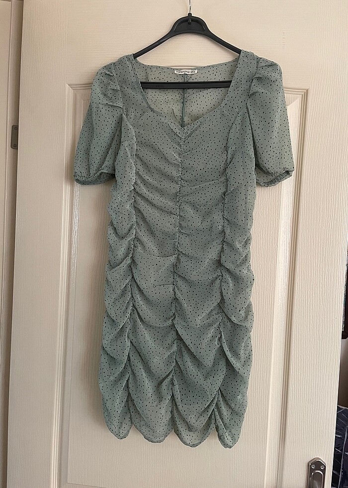 Diz üstü astarlı elbise. Tamamen sorunsuz. Hiç kullanmadım. Mint yeşili gibi rengi