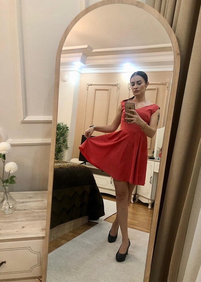 Mercan kırmızısı mini kiloş elbise çok şeker her ortama uygun kumaşı efsane ( bana şuan dar 53 kiloyum 34 bedene tekamül ediyor sizler için denedim) az kullanılmış mükemmel rengi efsane kaçırmayın kızlar
