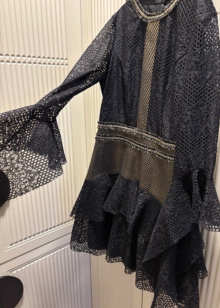 Dantel detaylı mini elbise hiç giyilmedi tasarım elbise