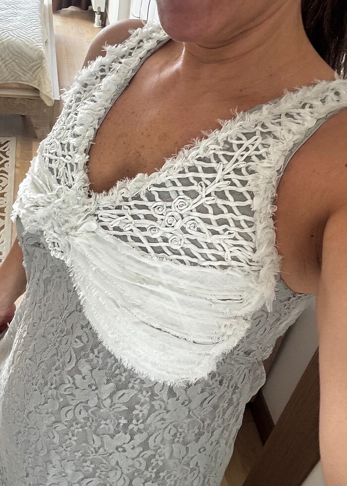 Desenli tul formu da gece elbisesi ici saten elbise az giyilmis fransiz tarzinda bir elbisesir,
