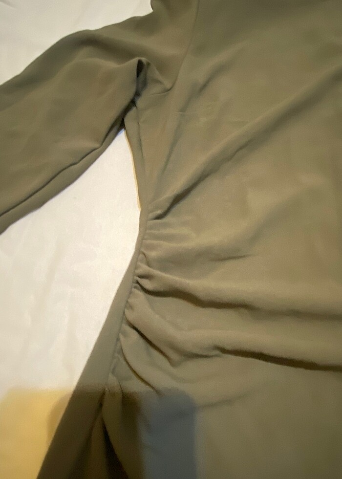 Bir tarafı büzgülü mini bir elbise hiç giymedim. Etiketi değil ama etiketin ipi üstünde. S bedene de olur