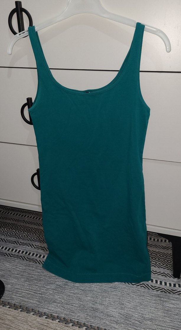Kayık yaka ve dar kesime sahip Yeşil renkli, kolsuz kadın elbise, penye kumaştan üretilmiştir ve spor ile günlük sokak stili için uygundur.
