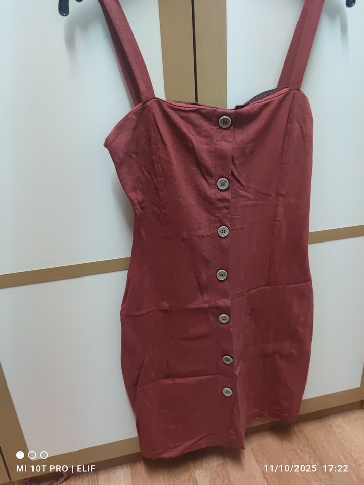Vücudu saran çok ince mevsimlik elbisexs-s bedene uygundur kiremit renginde