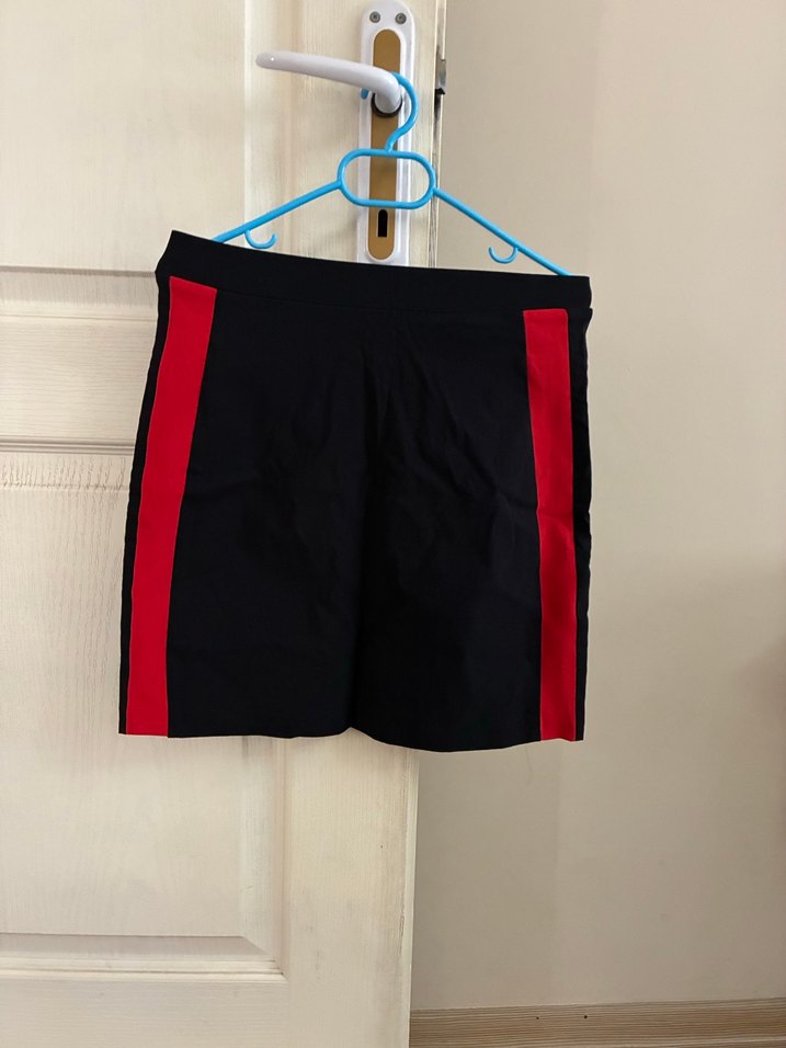 Marka temsilidir. Bel 32 cm, boy 40 cm, likralı #minietek . Yanlarda şerit detayı var. Hiç giyilmedi. Etiketi inceleyebilirsiniz. Etiket parçası duruyor.38 beden yazıyor ama 36 bedene olur. #zara #mango #bershka #koton #chima #ekol #ipekyol