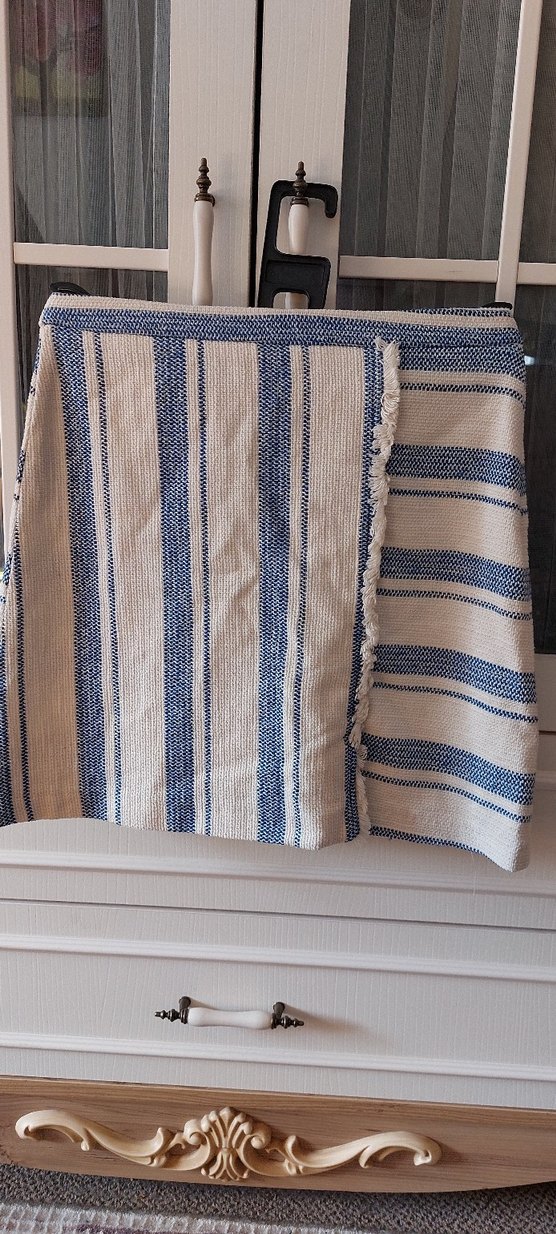 Mavi ve gri çizgili, bohem tarzda, yumuşak dokuma kumaştan mini etek